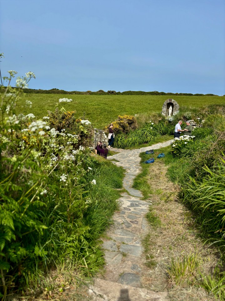 I watch the others find their steps around the cobbled churchyard. I keep on walking, up to an old fence, where there is a handwritten sign that says prayer walk.