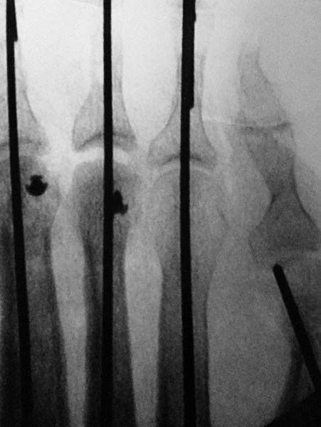 It will take several months for the wounds to heal, and then the pins can come out. The hope is that the connective tissue will regrow, and the torn spaces between the bones will knit back together.