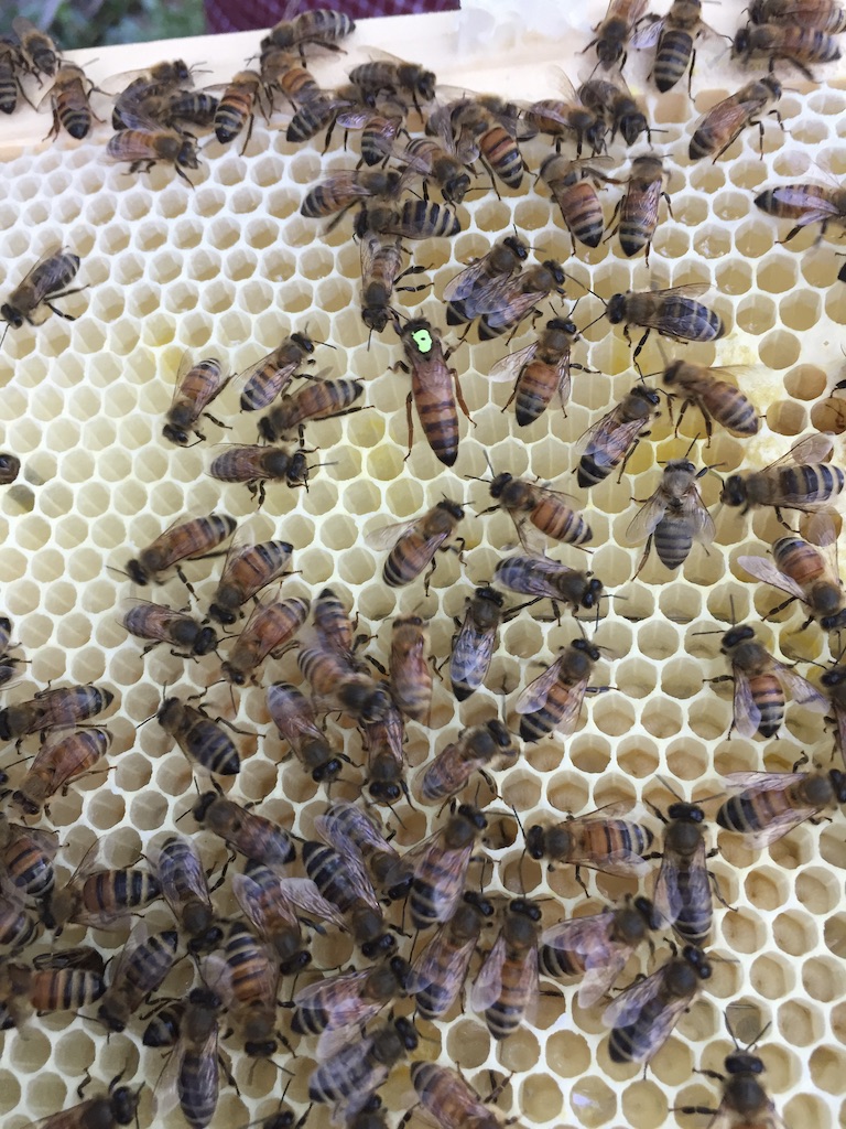 And I visualize our queen, she’s marked with neon green. Packed safe in the top tier (aren’t they always?)