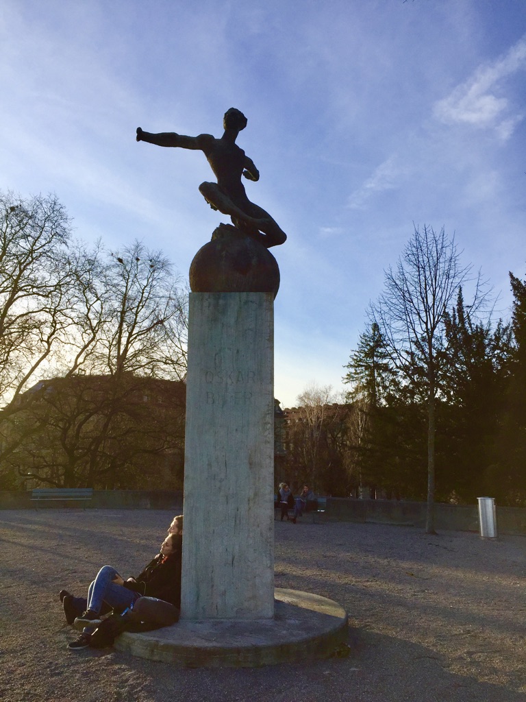A stiff wind cuts across the cold stone squares as I run through the university campus.