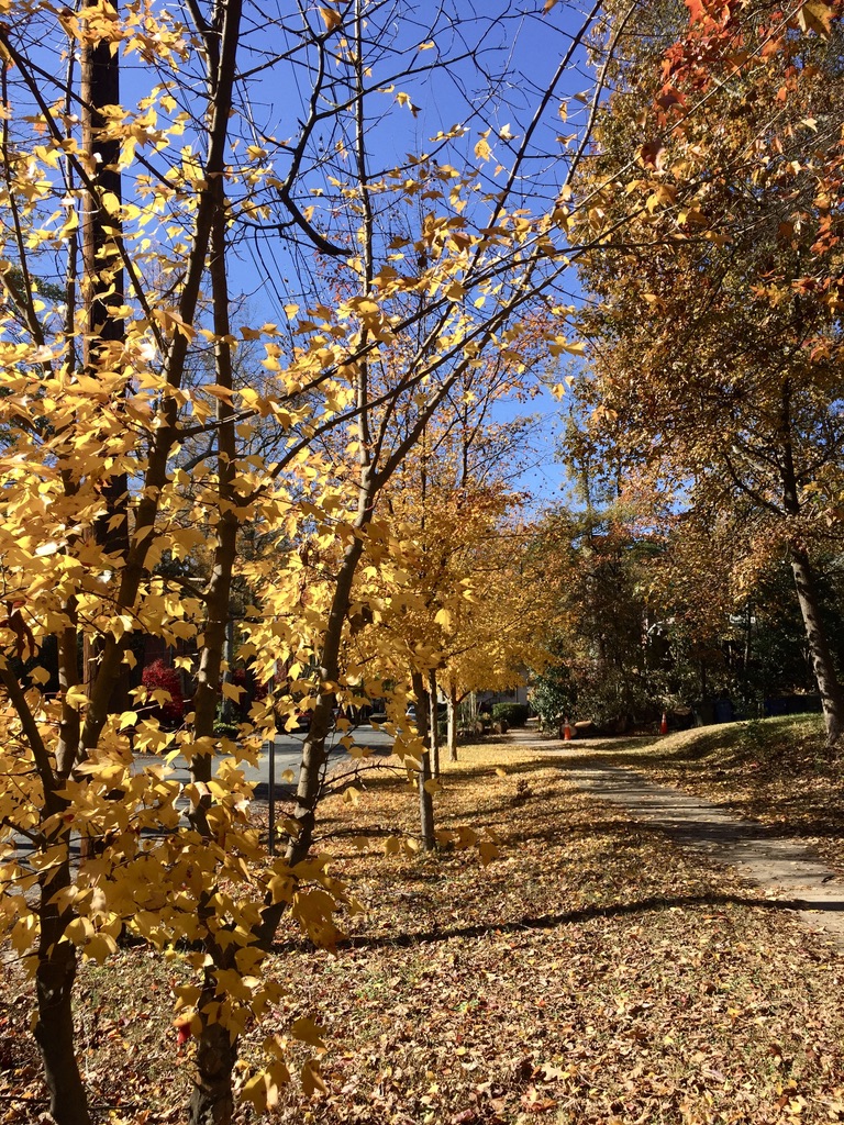 In our new yard there are lovely trees, a poplar, several pin oaks and even an ancient mulberry that might offer up fruit for jam, if I weren’t so lazy.