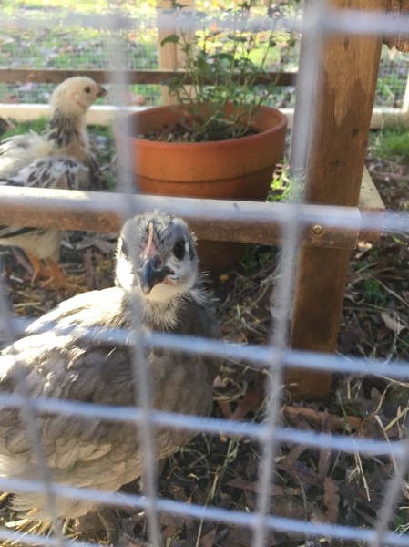 Well, originally I’d named her Cricket. Because she has a very plaintive, persistent chirp that dominates the chorus of the other chickie babies.