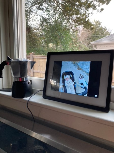 The instructions say that, once connected to WiFi, the device will allow her to send us bunches of photos quickly and easily.